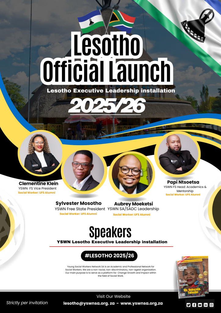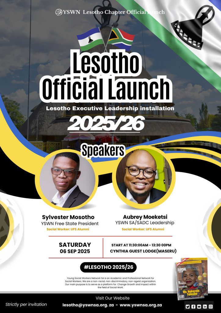 The Young Social Workers Network Southern African Development Community (YSWN SADC) -Kingdom of Lesotho Chapter will convene its second executive installation (official inauguration for 2025/2026) on 6th September 2025 at Cynthia Guest Lodge, Maseru, Kingdom of Lesotho.